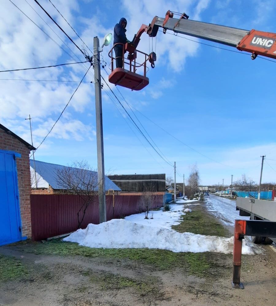 В пос. Мирном, пос. Терновом, а также в х. Северин на ул. Красноармейской и в ст. Тбилисской на ул. Красной, Крепостной и Набережной, администрацией Тбилисского сельского поселения Тбилисского района проведены работы по замене вышедших из строя ламп уличного освещения.