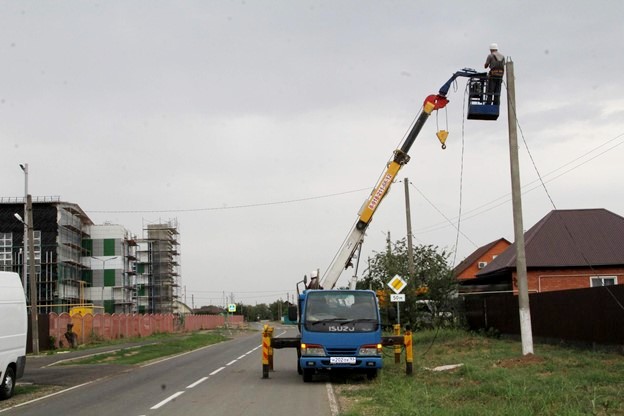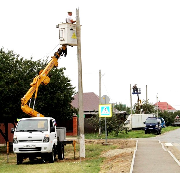 Завершается строительство новой линии уличного освещения по ул. Шпилевой с-цы Тбилисской. Протяженность линии составляет более 500 метров, и для её реализации было установлено 15 опор, на которых произведён монтаж 14 современных LED ламп.
