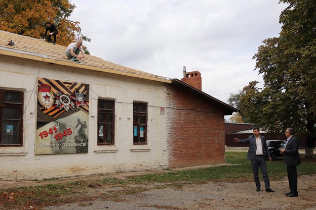 Глава Тбилисского сельского поселения А. Н. Стойкин совместно с директором МБУК "Тбилисский культурно-досуговый центр" А. В. Савченко провели рабочую встречу, в ходе которой проконтролировали ход работ, осуществляемых подрядчиками в клубе пос. Октябрьский и в клубе «Гречишкинский элеватор». Работы выполняются в рамках реализации государственной программы Краснодарского края «Развитие культуры», направленной на улучшение культурной инфраструктуры нашего региона.