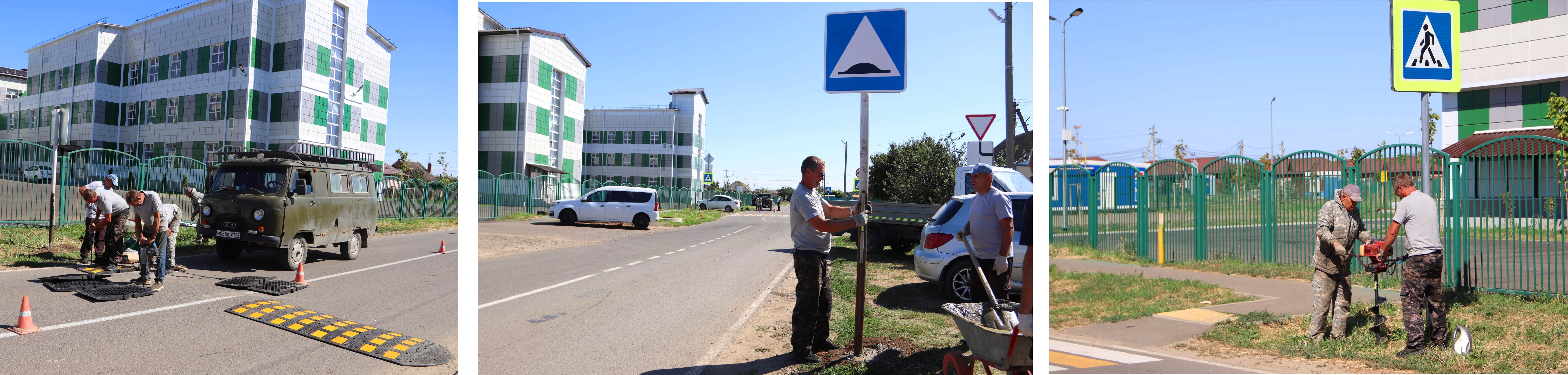 В преддверии начала нового учебного года специалистами МАУ Радуга установлены искусственные неровности, дорожные знаки и светофоры Т.7 на территории прилегающей к новой школе, расположенной по ул. 8-е Марта, 90Б, в ст-це Тбилисской. Обновлены дорожные знаки на дорогах ведущих ко всем детским и образовательным учреждениям Тбилисского сельского поселения.