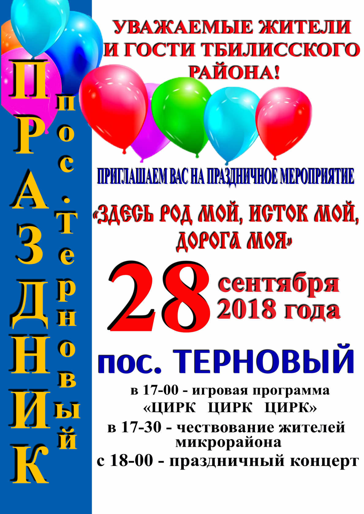 Уважаемые жители поселка Тернового Тбилисского сельского поселения!