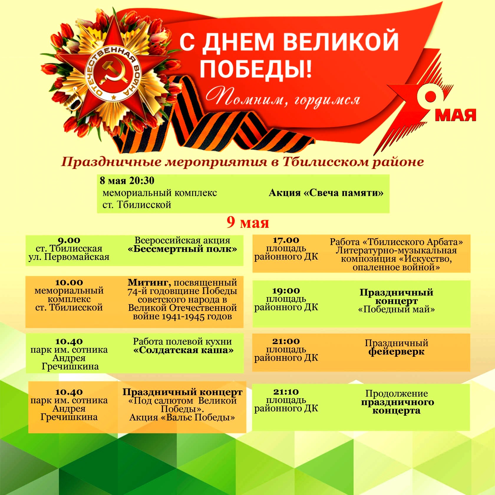 План праздничных мероприятий, посвященных Дню Победы.